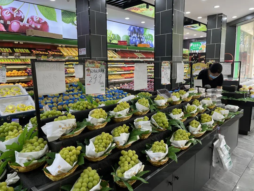 8月26日,记者在奉贤育秀路一家大型水果市场看到,西瓜类解暑类水果仍然热销,黄桃、水蜜桃、蜜梨等夏季水果占有量还有一半,葡萄还处于销售高峰期。而葡萄中的畅销品类“阳光玫瑰”价格逐渐亲民,因此依然很受欢迎。与此同时,一些时令水果的价格受上市量增多的影响出现下跌,反而是品尝的好时机。