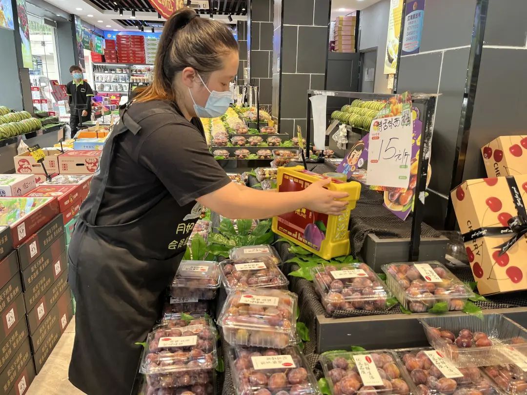 水果店工作人员介绍表示,现在主要销售大品类的是西梅、冬枣,以及葡萄中晚熟的阳光玫瑰。此外,奉贤本地黄桃、蜜梨也还在销售期,售完为止。再过一段时间,9月份会上新突尼斯软籽石榴、爱媛果冻橙等橘橙类水果。
