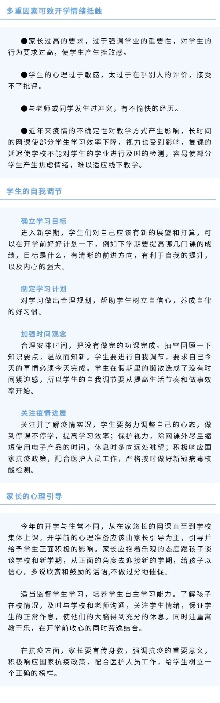 据统计,在开学前后的2周时间,约80%的学生会出现心理波动。这主要是由假期生活与开学后的学习环境反差悬殊造成的。