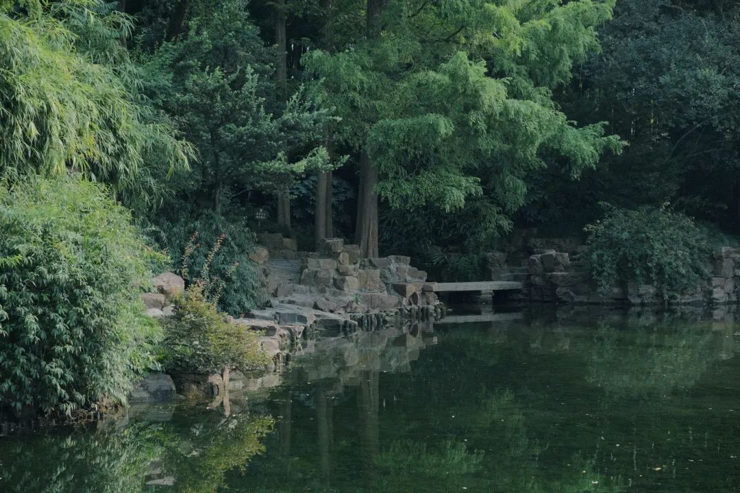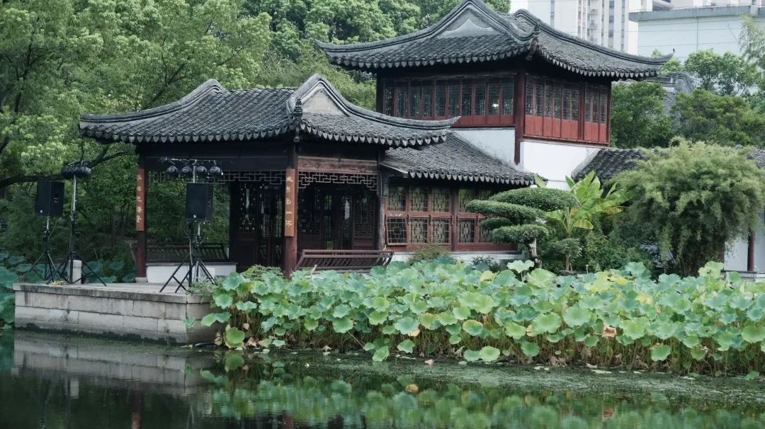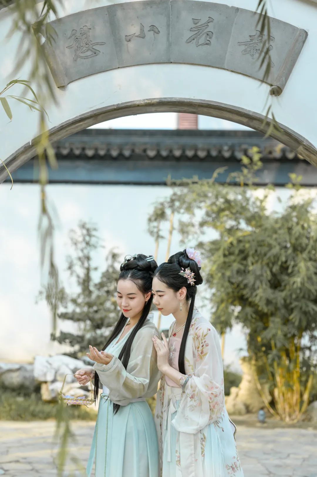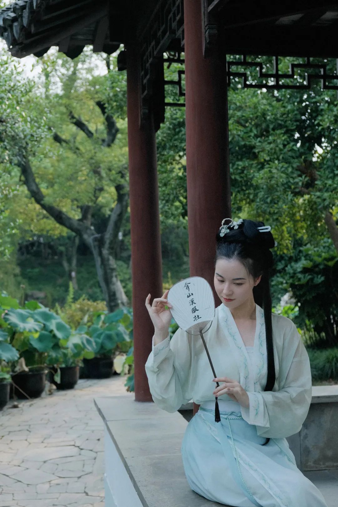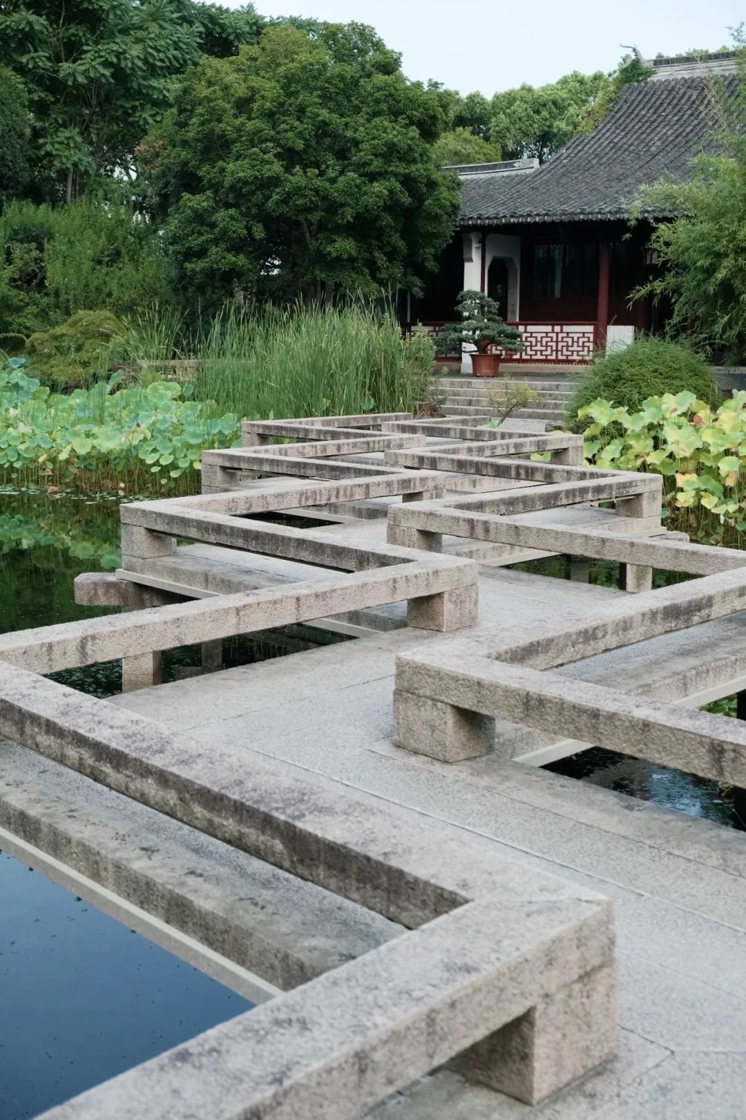 模特从九曲桥上走过,摄影师站在两边的凉亭内都可。