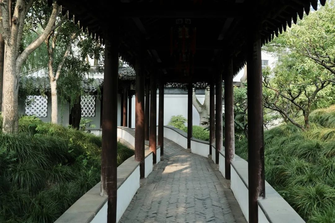 模特在连廊内亦坐亦站,摄影师在连廊两侧取景都可以。