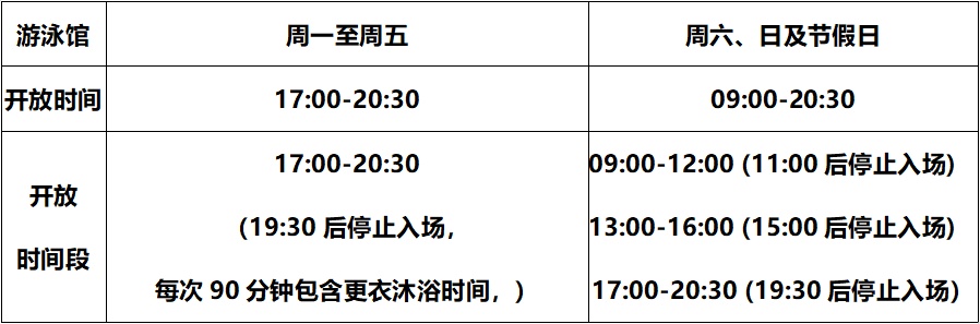 综合考虑本市疫情防控形势和松江大学园区2022年秋季学期体育选修课课程安排,并根据上课师生与对外开放人群错时(或空间隔开)的原则,上海大学生体育中心游泳馆、滑冰馆2022年9月5日起对外开放时间作如下调整: