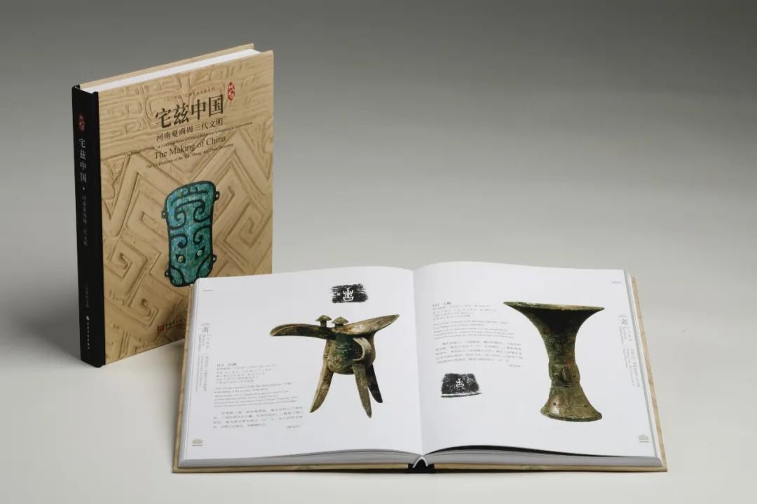 《宅兹中国:河南夏商周三代文明》是本次特展的同名图录,收录青铜器、玉器、漆器等文物共302件(组),包括完整器物图及局部细节呈现,并配有说明文字。展出的一级文物有60余件,都收录在书中,如“中国十大考古发现”之一妇好墓出土的司母辛觥、妇好鸮尊、凤首人身形玉佩,以及上海博物馆馆藏商鞅方升等。
