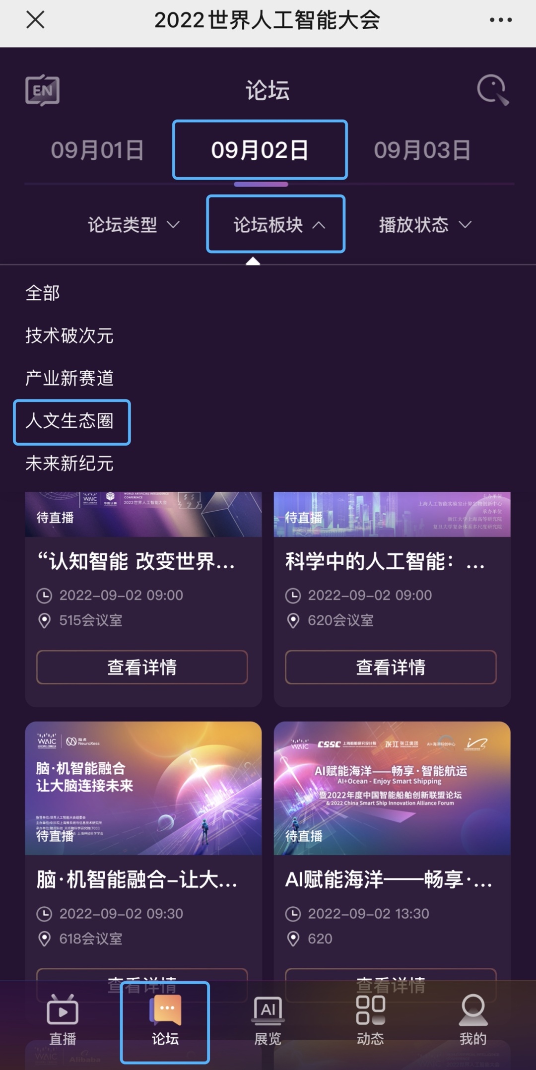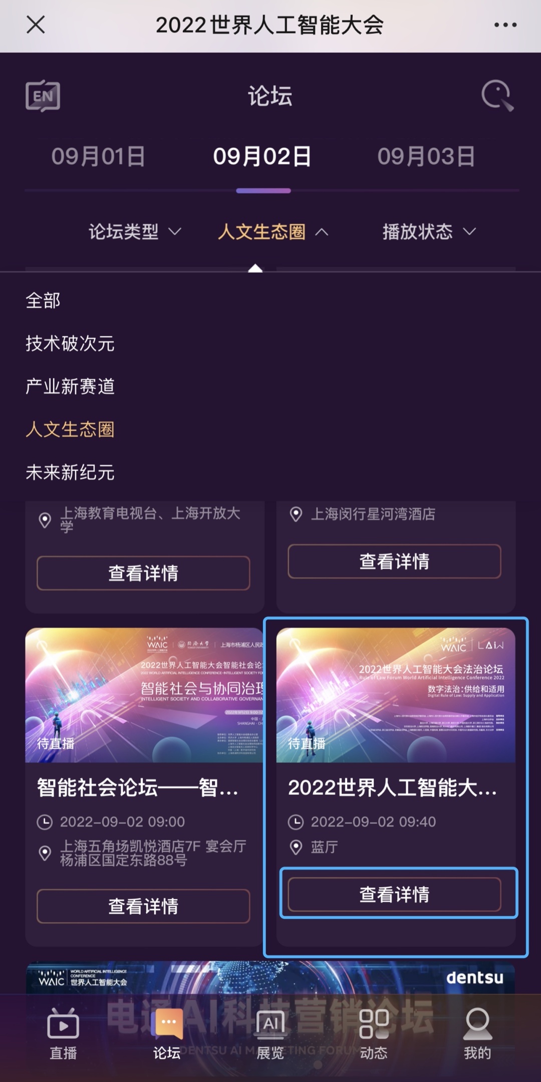 找到「2022世界人工智能大会法治论坛」或「2022世界人工智能大会法治青年论坛」