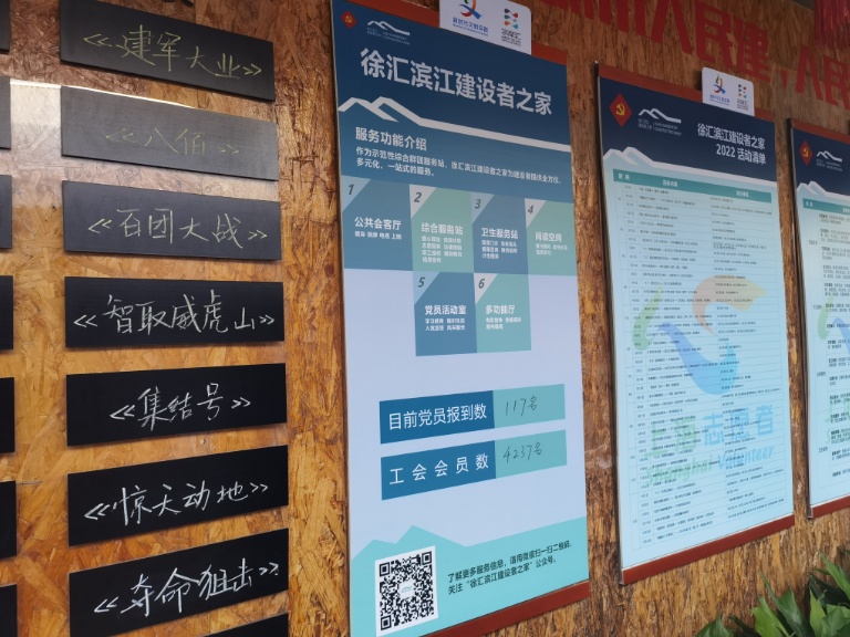 徐汇滨江建设者之家作为全市第一家扎根建筑工地、服务建设者的基层党群工作站,惠及19个项目工地,3000余名外来务工建设者。本轮疫情期间,工地实行封闭管理,宝宝阿姨留在建设者之家与他们一起度过了85天。
