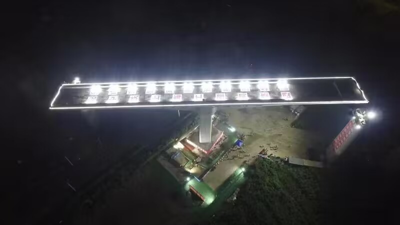 福山特大桥芝罘段全线2410米,共66个桥墩,采用双线T构转体梁,本次福山特大桥顺利转体作为桥梁合龙的关键环节,打通了潍烟高铁芝罘段架梁路线的“咽喉”要道,为下一步无砟轨道及铺轨施工阶段做出重要铺垫,为全线通车奠定了坚实基础。