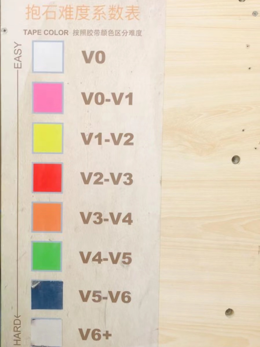 抱石区分为slab面、屋檐、15度斜壁、20度斜壁和30度斜壁等区域。常期配置抱石线路50条左右,难度涵盖V0-V6+。