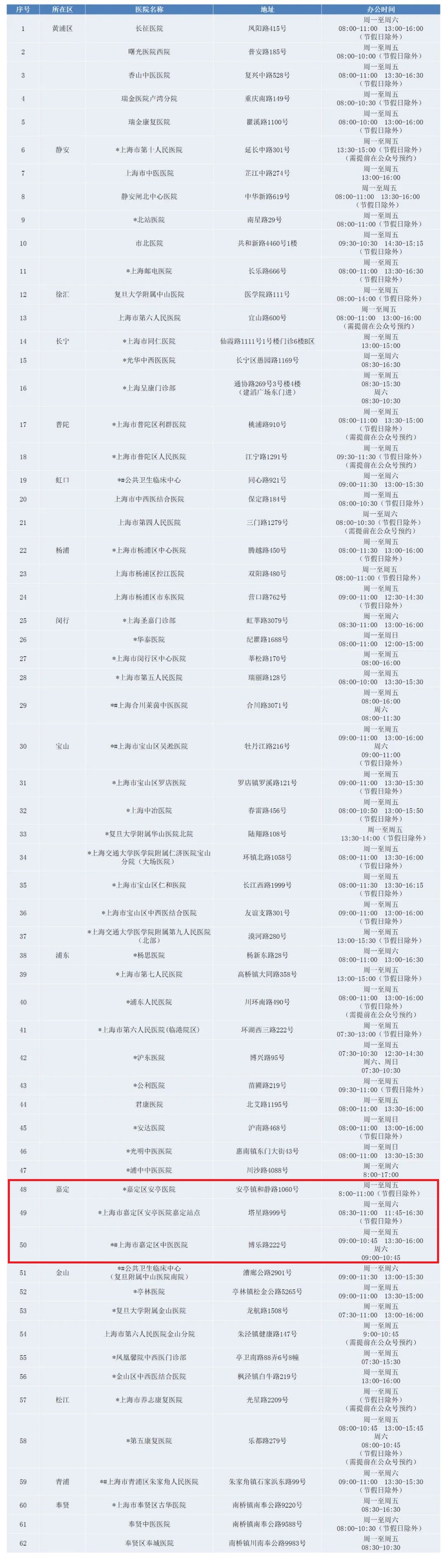 市公安局交警总队介绍,上海已推出62家“交管12123”指定联网医院,方便驾驶人前往办理机动车驾驶证身体检查,其中嘉定有3家。