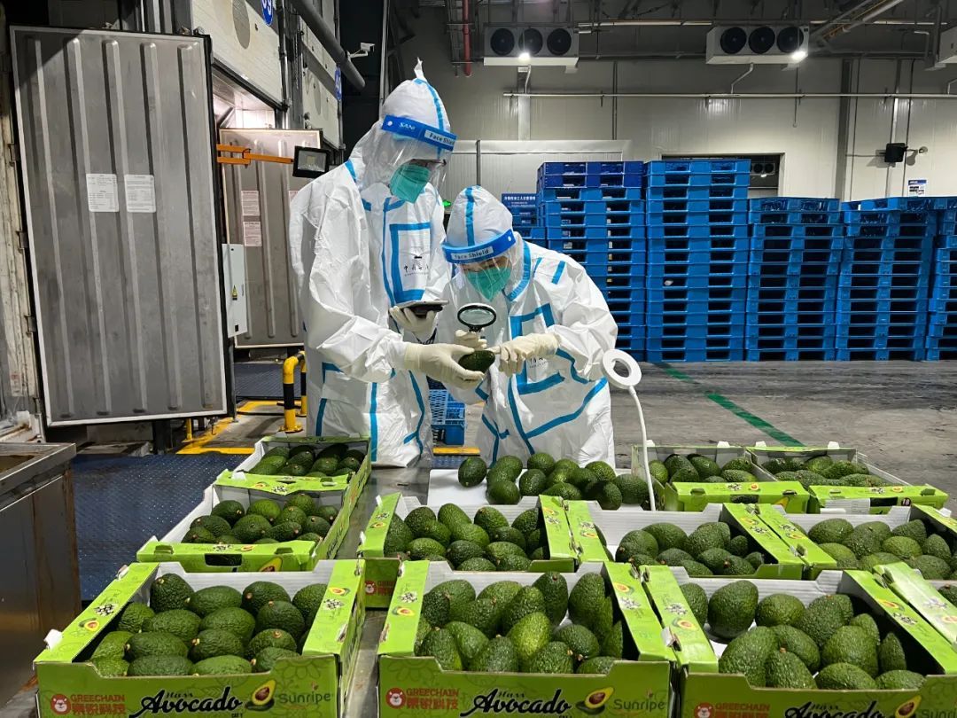 牛油果到港后,海关关员仔细核验了进境动植物检疫许可证和输出国家官方植物检疫证书,重点查检是否存在地中海实蝇等检疫性有害生物,严把进口农产品质量安全关。在确保符合检验检疫要求后,当天下午该批牛油果被顺利放行。