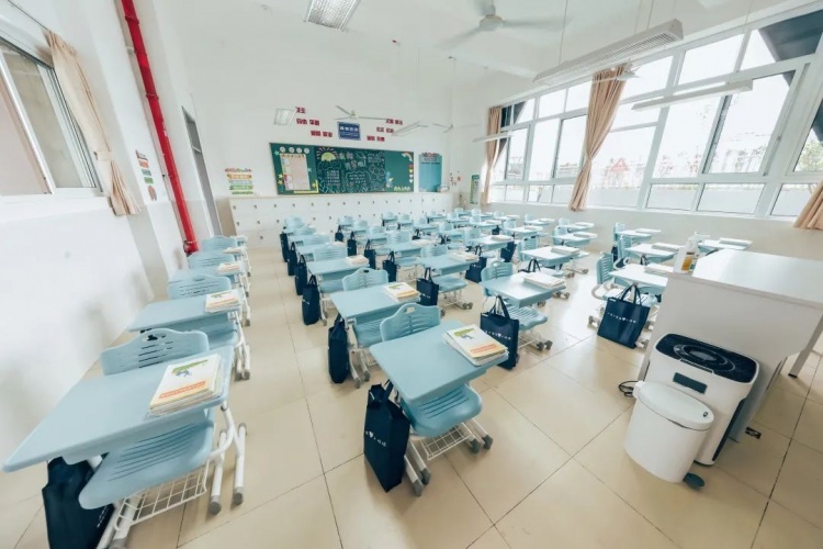 “欢迎新同学,开启新学期”,一年级教室里的黑板报营造出迎新氛围,每一张课桌上整齐摆好了新书,课桌旁则挂着贴了学生姓名的新校服袋。校长卢洁介绍,康泽校区占地面积约2.56万平方米,建筑面积2.1万平方米,办学规模为35个班级。学校今年刚刚送走了第一届毕业生,新校区的投用极大缓解了原先学校教室资源严重不足的困境。9月将有一至三年级共20个班级、749名学生到康泽校区开始新学年的学习生活,孩子们将享受到室内体育馆、图书馆、电子阅览室、多媒体教室、数字化学习中心、综合楼(含心理室、美术室、音乐室、舞蹈房、书法室、劳技室、自然室)等高标准教育教学设施。