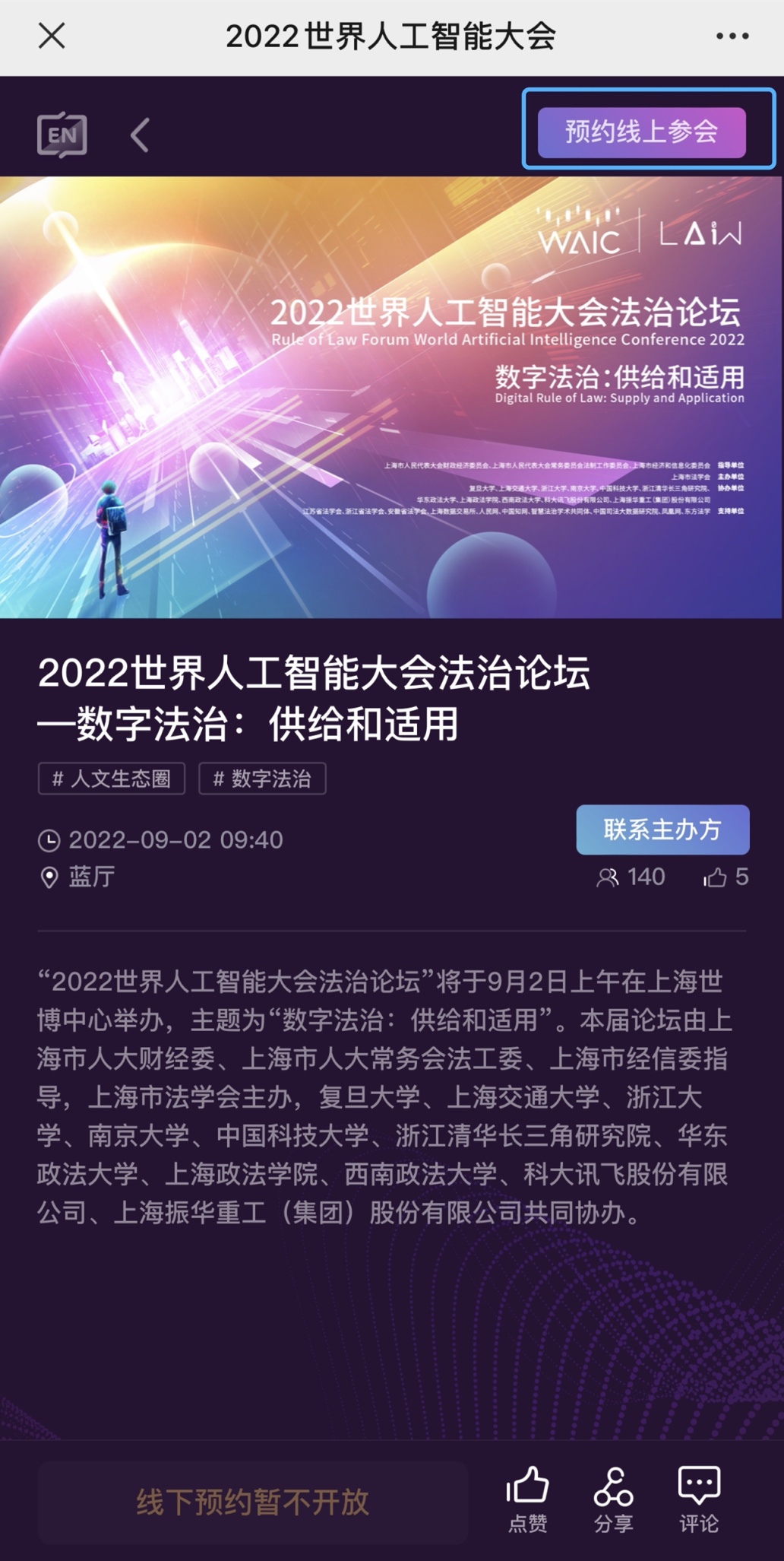 找到「2022世界人工智能大会法治论坛」或「2022世界人工智能大会法治青年论坛」