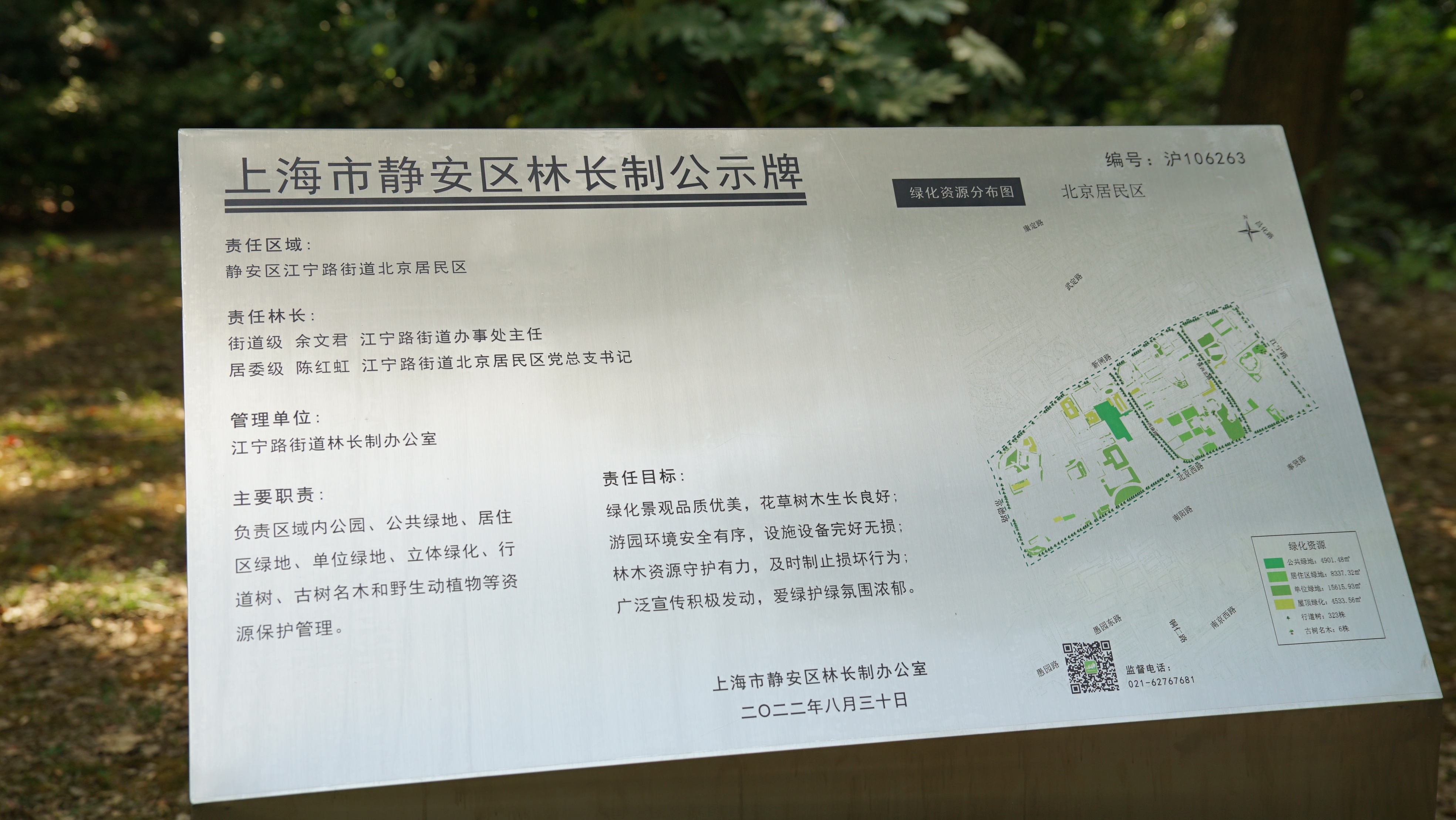 8月30日,静安区第263号居民区林长制公示牌在陕西北路457号辞书出版社的花园中竖立,这标志着静安区263个居民区林长制公示牌8月份全部竖立完成,这项工作更是在全市率先完成。