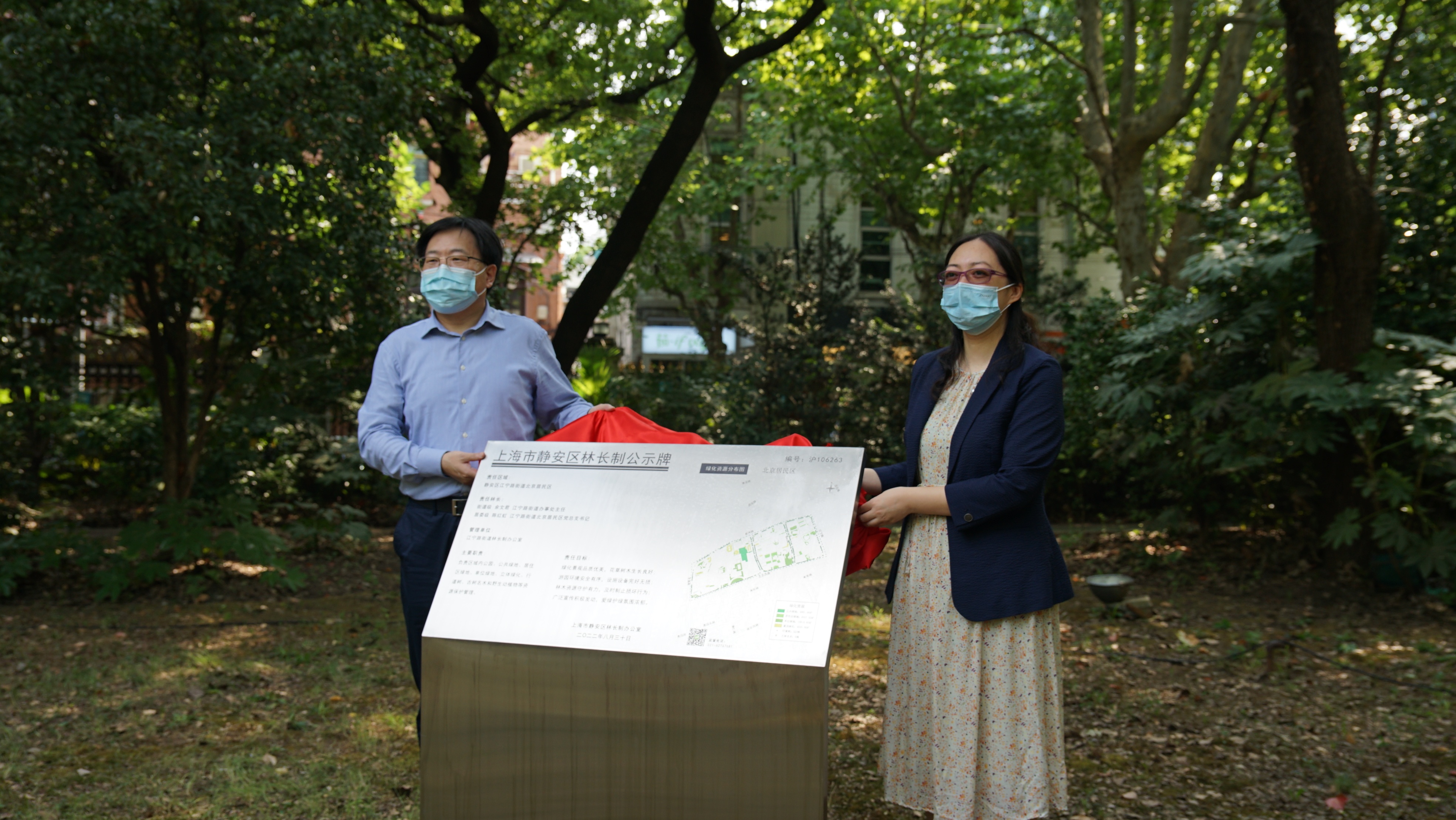 在活动现场,区林长办副主任、区绿化市容局局长张西飞与江宁路街道办事处主任、街道林长余文君共同揭开了这座第263号林长制公示牌。江宁路街道北京居民区林长以及多位居民代表也来到了现场,共同见证静安区林长制工作的重要“里程碑”。
