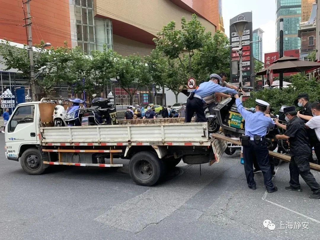 针对辖区静安寺、大宁、大悦城等主要商圈周边道路外卖寄递配送车辆乱停放、违规占道现象较为集中的情况,静安交警及时开展相关交通违法行为整治,联系区相关部门对占道车辆进行统一清运,及时还路于民。