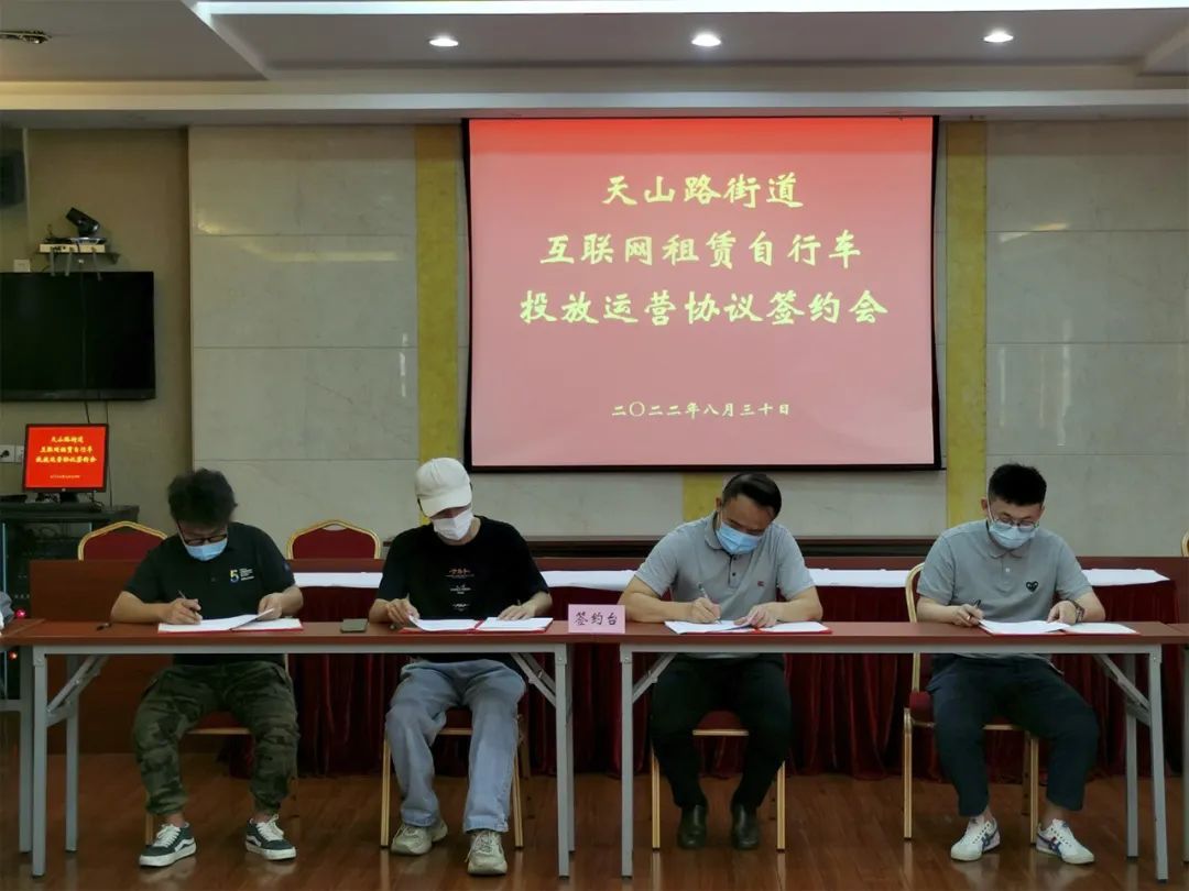 8月30日,天山路街道与哈啰骑行、美团单车和青桔单车三家互联网租赁自行车企业共同签署投放运营协议,明确共享单车投放管理责任,推动多部门共管共治的治理新模式,营造便捷的绿色出行环境。据了解,此举在全区尚属首次。