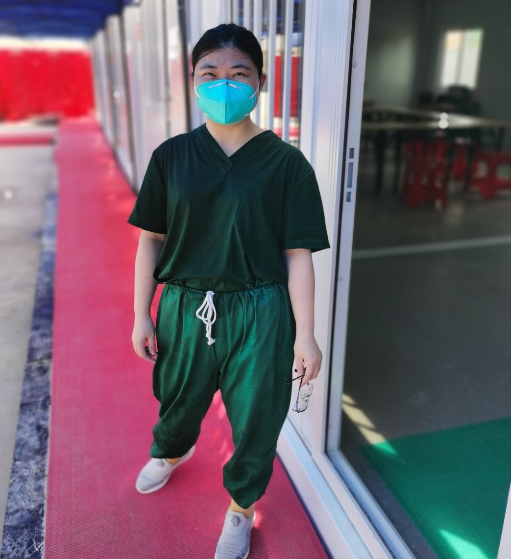 我们同济援琼医疗队队长李健老师,总是不厌其烦地叮嘱大家,严格遵守防控流程,如果进舱不舒服就及时出来,抓紧时间休息,保障睡眠和营养,提醒喝中药预防方……中医科的洪岩医生,还被推举为队医,专门负责管理医院为大家准备的小药箱并关照队员们的健康状况。