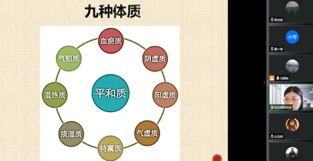 我们的队医洪岩医生,很快就接诊了腹泻、呕吐、头晕、胸闷、虫咬皮炎、荨麻疹,湿疹等病例。医疗队的工作正处于一鼓作气,拔点攻坚,巩固扩大疫情防控成果的关键时期,一定要保护好队员!为此,洪岩医生专门在每晚大交班的腾讯会议上,为上海援琼医疗队进行了一次题为《三亚方舱话养生——特定环境下医务人员的中医保健法》的讲座。讲座从中医理论出发,深入浅出地分析了三亚方舱的工作与生活环境,介绍了实用的防病、保健中医方法,反响热烈,线下也收到很多队员有关中医防病治病的咨询。