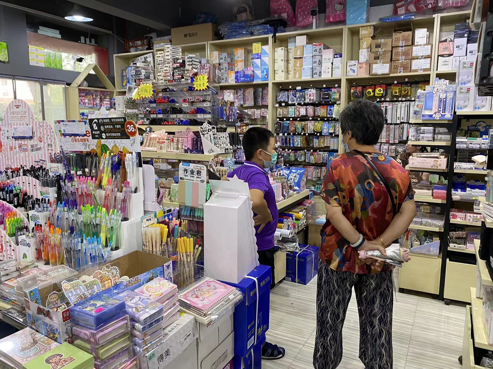 一旁的家长邹女士正拿着购物清单一件件寻找商品,为孩子开学购置文具。“有没有A4大小的美术彩纸?”“这个大小的书包还有别的颜色吗?”“贴在书上的姓名贴在哪里?”在店员的帮助下,邹女士很快就买齐了所需商品。“这里可以一站式买齐想要的文具,价格也不贵,还是挺方便的。”邹女士说。