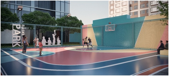 设计打造了运动场地,篮球的社交属性更强,篮球场是必须的,此外更配备了羽毛球场与乒乓球场,在运动中社交。