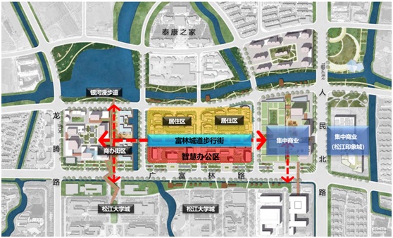 项目规划围绕富林城道步行街、高端商务区以及品质生态居住区三大主题,富林城道步行街的打造将带动“商务办公、生态宜居”板块的氛围感,从而达到品质片区的整体提升。