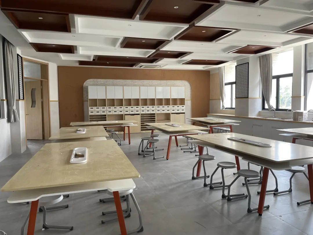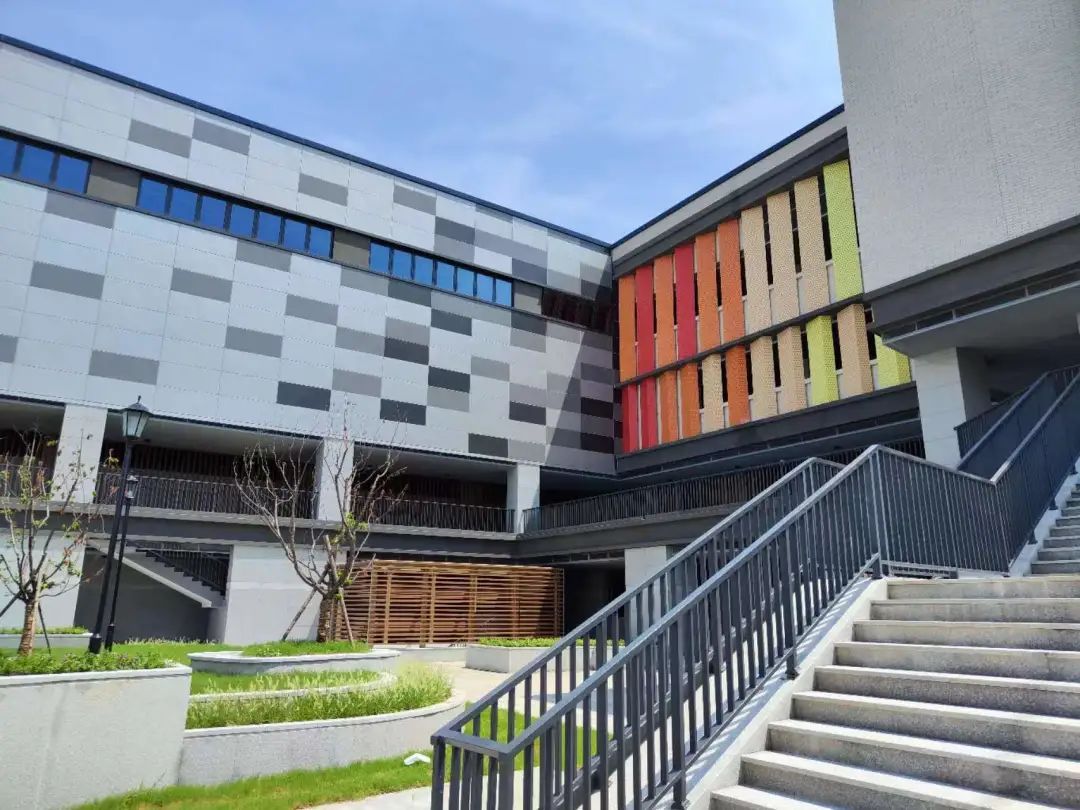 在占地约2万平方米的校园内,色彩丰富的教学楼、简洁优雅的内饰,还有小剧场、室内体育馆、各类专用教室等现代化设施设备都让人眼前一亮。室外标准运动场上,还有附近的“本地居民”白鹭在此嬉戏玩耍,可以想象学生即将在这里迎来多姿多彩的学习生活。