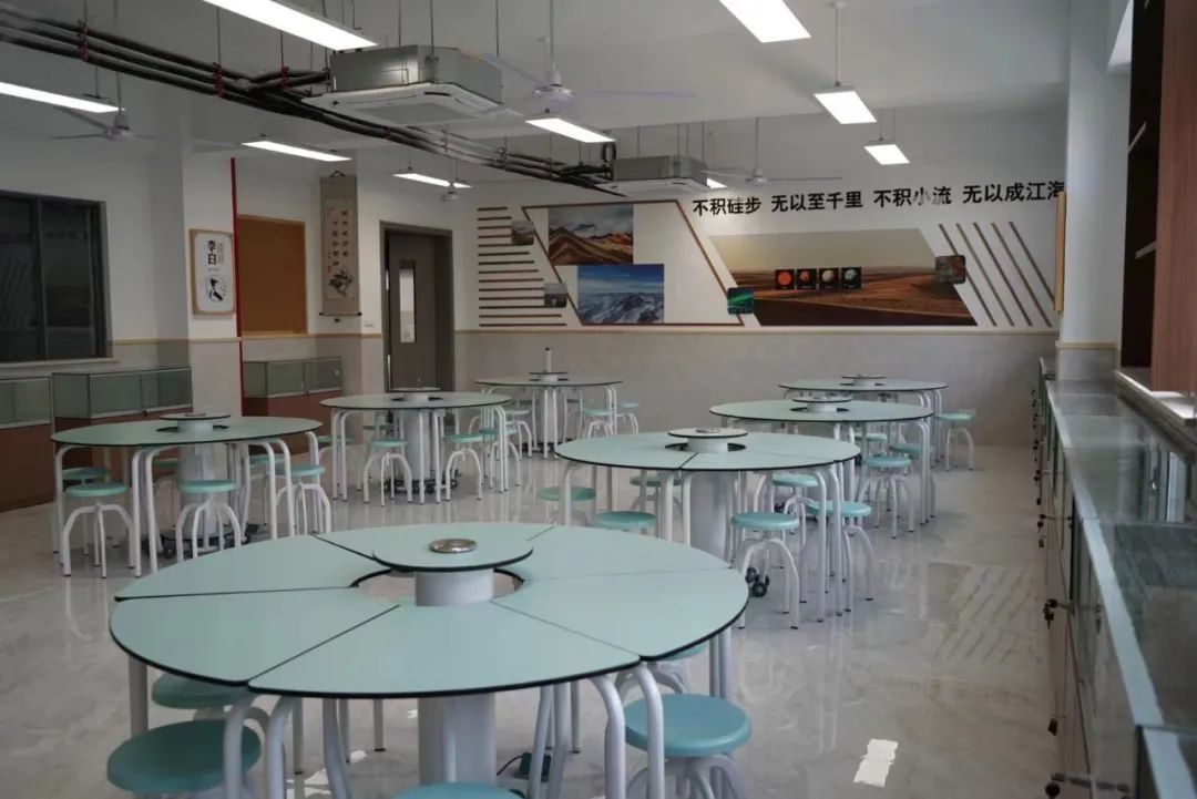 设施设备方面,各类物资、器材都已配备完毕。扩建后的学校拥有一个游泳馆,一个小剧场,一个大型操场,一个多功能厅等。设有物理实验室、科创室、计算机室、电视台等23间专用教室,各项设施设备一应俱全。全校办学规模27个班级,约1060名学生。