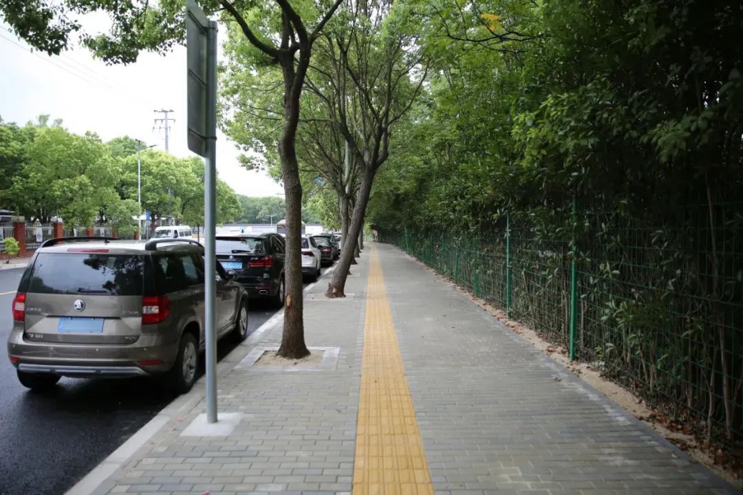 8月31日上午9点,在迎园中学门口,新成路街道工作人员和相关工程技术人员正对这条学生上学的必经之路进行最后检查。此次倪家浜路整修工程总长225米,包括对主干道铺设沥青、人行道铺设地砖、在道路两旁安装太阳能路灯等内容。