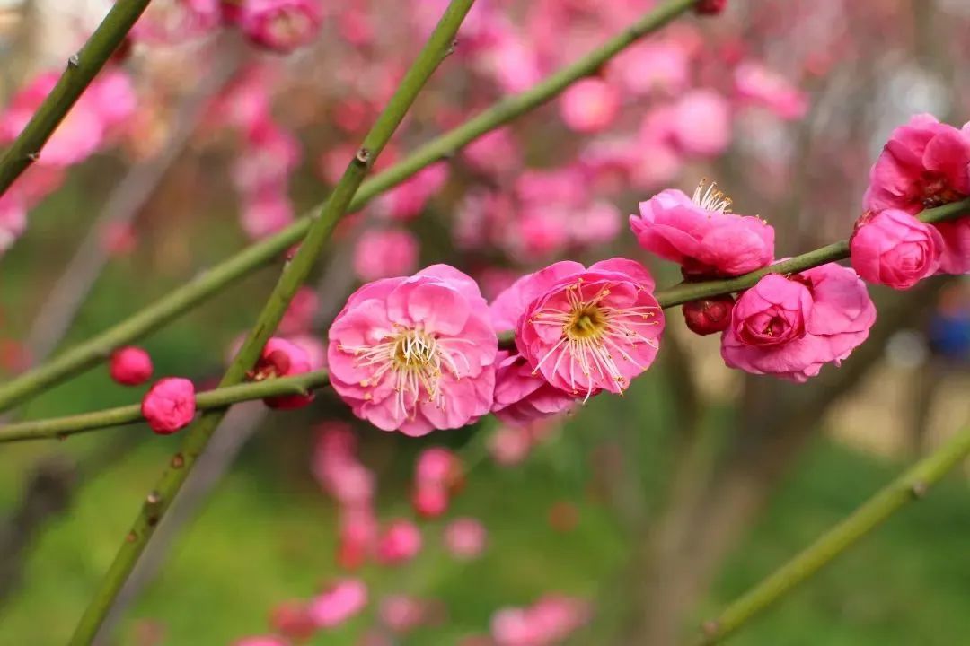 梅,小乔木,稀灌木,花单生或有时2朵同生于1芽内,直径2-2.5厘米,香味浓,先于叶开放。花萼通常红褐色,但有些品种的花萼为绿色或绿紫色;花瓣倒卵形,白色至粉红色。梅原产中国南方,已有三千多年的栽培历史,无论作观赏或果树均有许多品种。许多类型不但露地栽培供观赏,还可以栽为盆花,制作梅桩。
