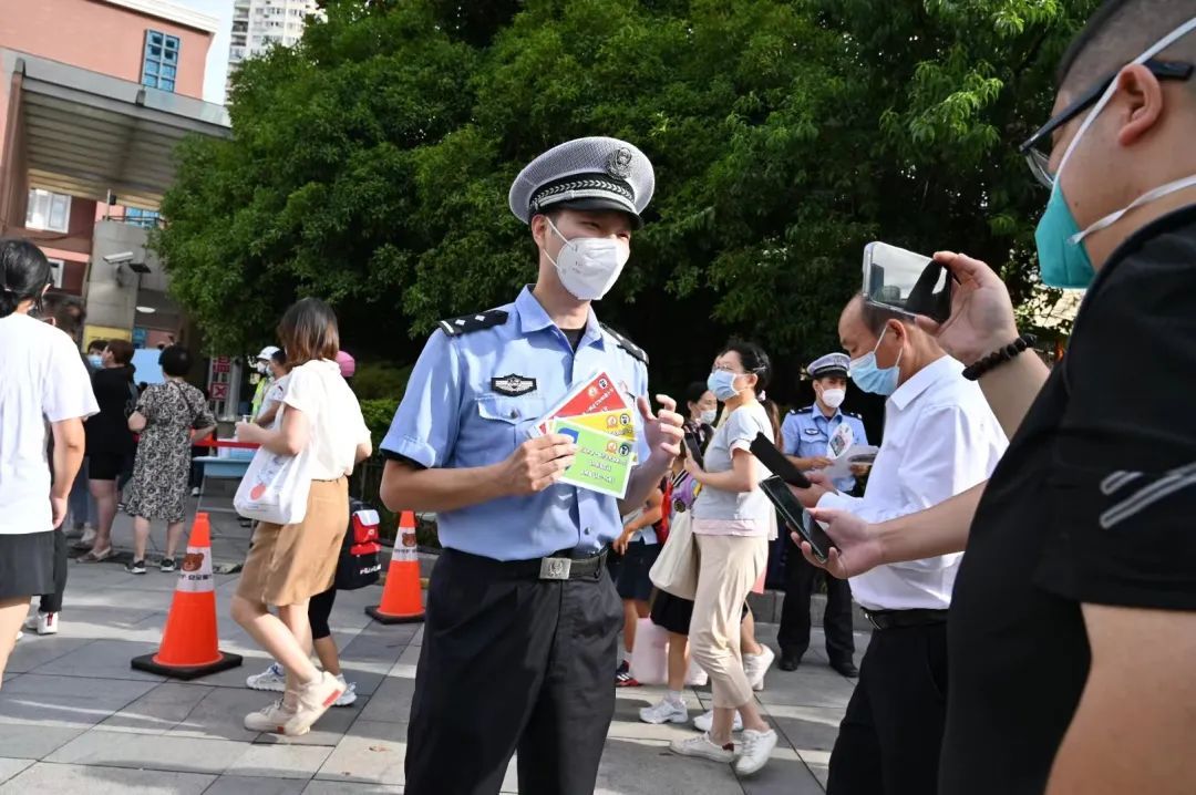 和民警一同保障开学。