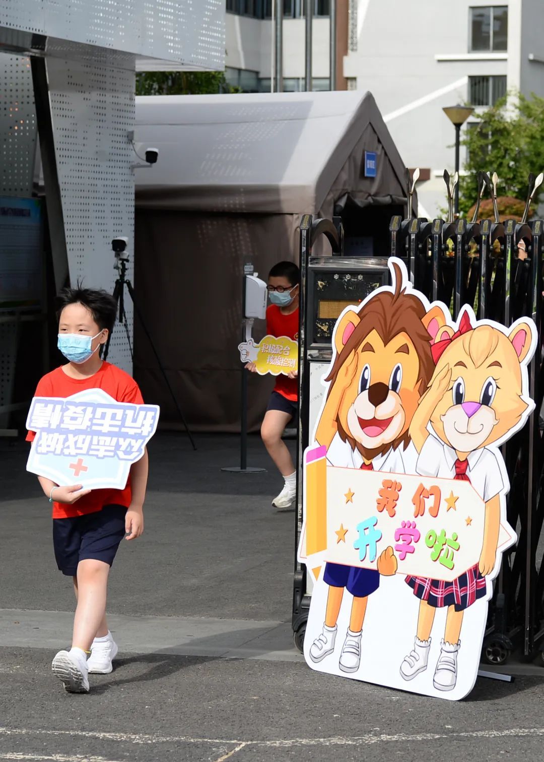 “我认识这只小狮子,它是学校的吉祥物,叫思迈。”“我的语文老师是王老师,我的数学老师也是王老师……”记者在现场发现,虽说是一年级新生,但对校园却一点不陌生,不少孩子甚至能熟悉地叫出开学当天校门口摆放的两只吉祥物。