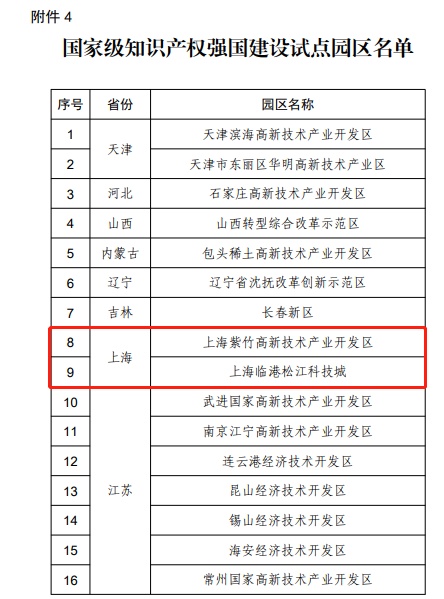 近日,在国家知识产权局官网发布的《国家知识产权局关于确定国家知识产权强县建设试点示范县和国家级知识产权强国建设试点示范园区的通知》中,位于闵行的紫竹高新区被评为“国家级知识产权强国建设试点园区”(全市仅两家)。