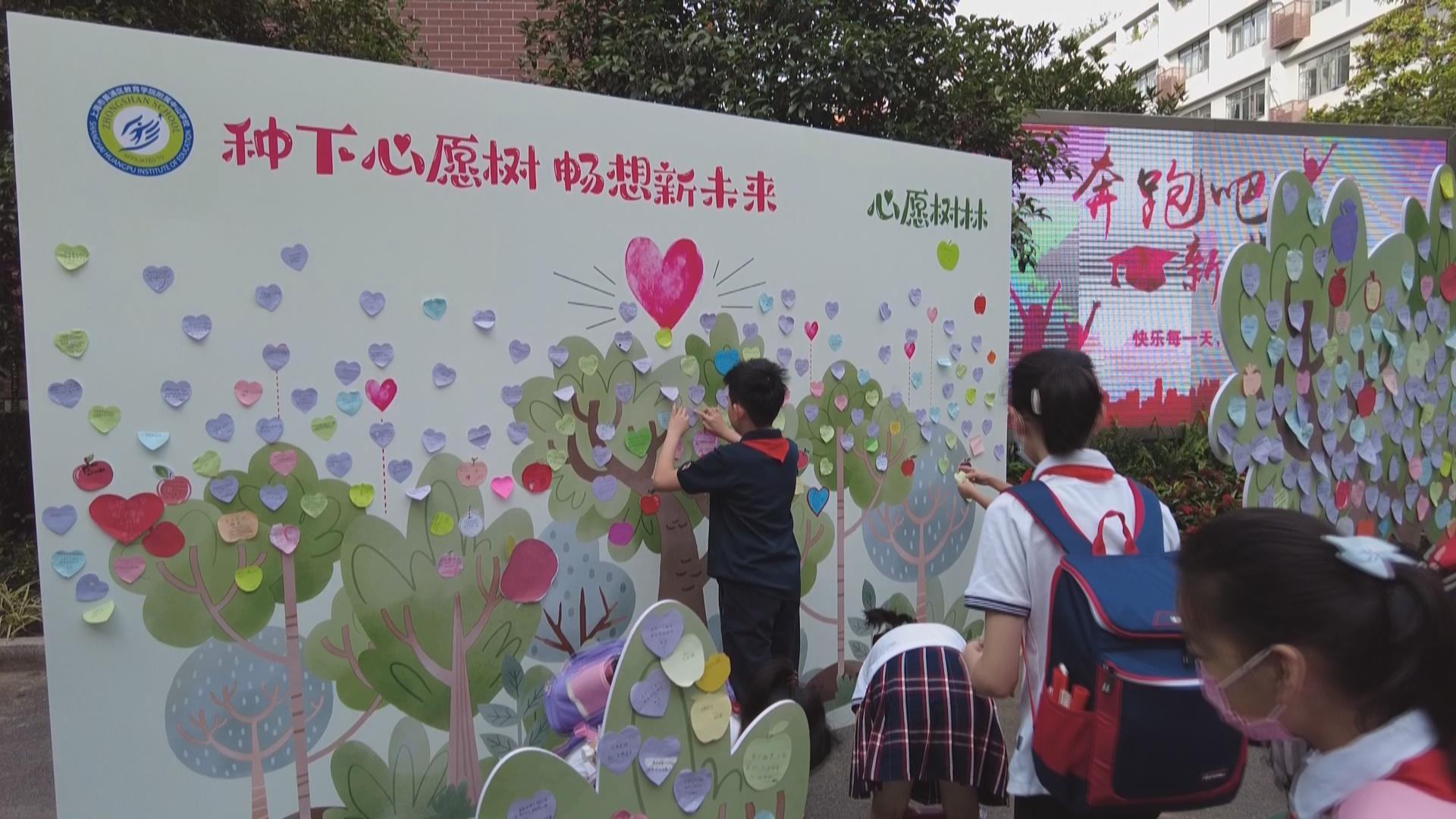 为了欢迎孩子们的回归,中山学校特别在校门口的醒目位置设置了大型“心愿树”,孩子们将自己的心愿写在便利贴上,为新学期许下美好的祝福。