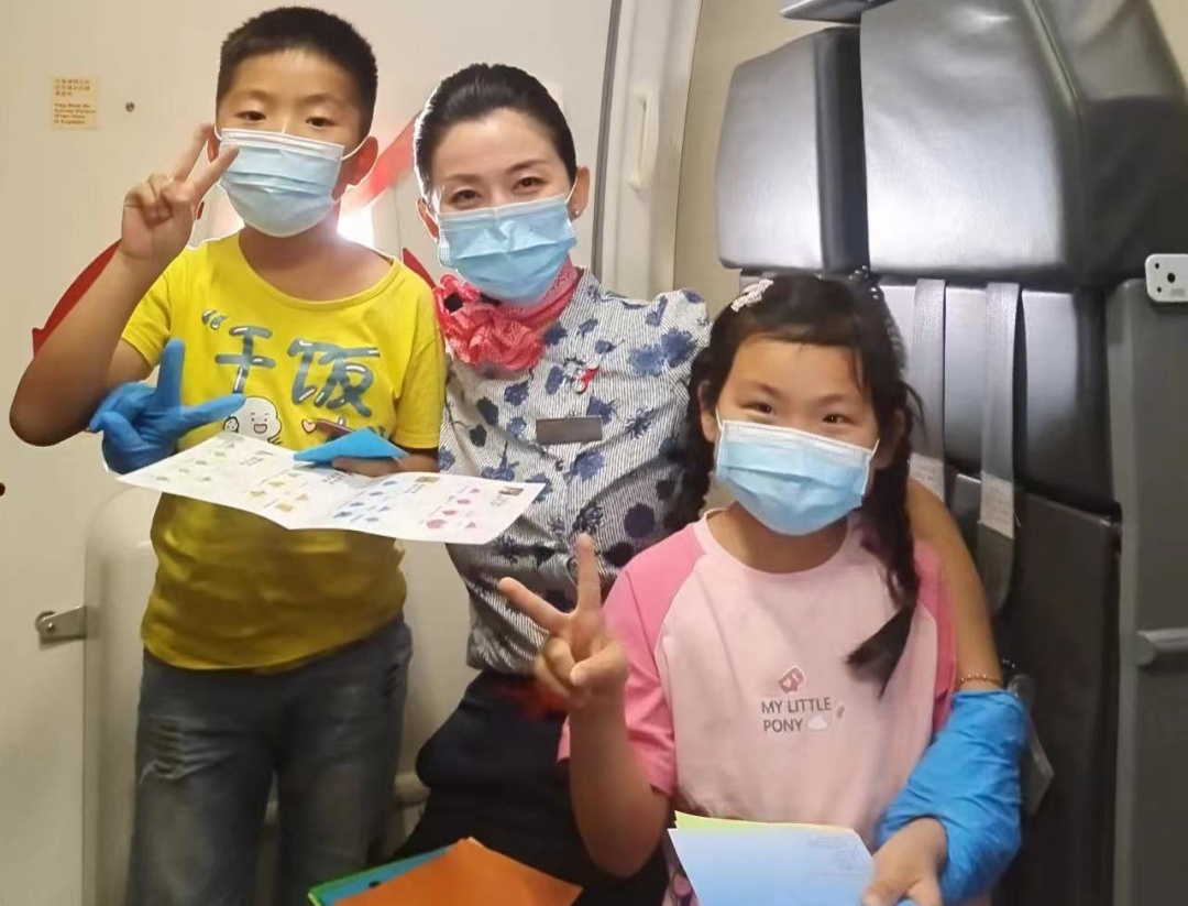 在一次执飞的旅途中,我和两个小朋友建立了良好的关系,在飞行途中,我悉心照顾两人,陪他们聊天、画画,使寂寞枯燥的旅途增加了欢笑和快乐。送他们下飞机的那一刻,我们相约明年再见。