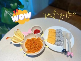 用心关爱小旅客,贵宾室专门配备了色香味俱佳的“儿童餐”:香脆可口的薯条蘸上酸酸甜甜的番茄酱,Q弹意面配上香浓的肉酱,营养丰富的水果拼盘、鲜橙汁....这些都是孩子们的最爱。