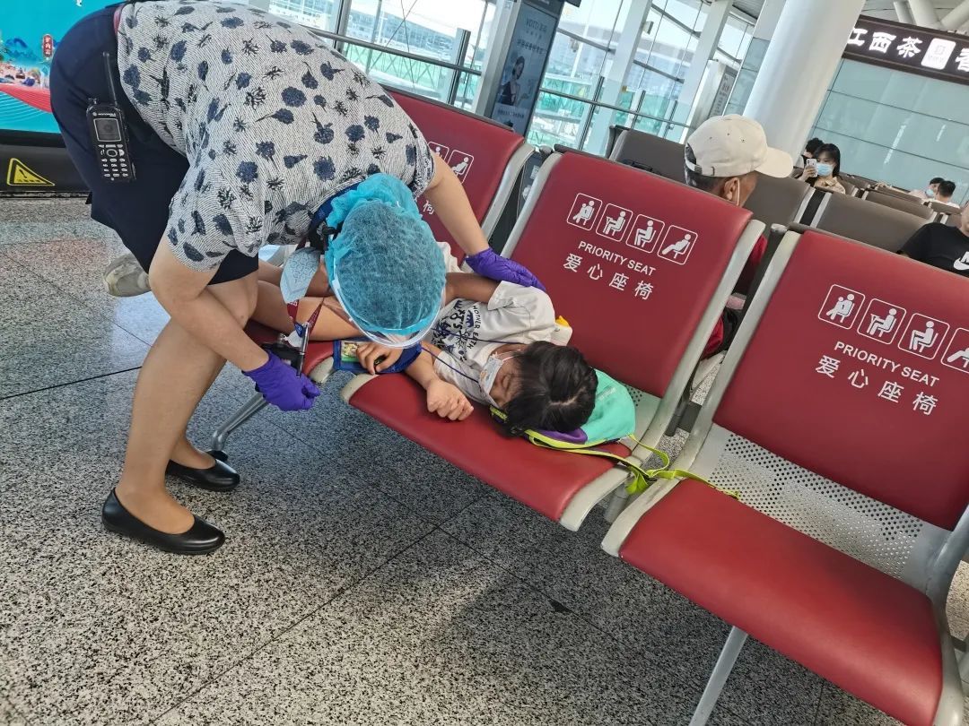 小朋友的父母不在身边,她有些不安和害怕,地服工作人员发现了小朋友的不安,便一直陪在她身边,给她暖心的安慰,陪她用餐,还帮她梳头,直到她上飞机。