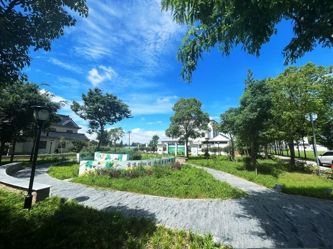 行走在秦阳村平坦的村路上,碧绿的行道树后就是一个改造完毕的“口袋公园”。整体环境干净整洁,还设置了座椅供人休息。