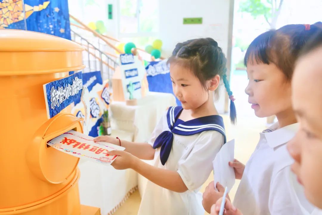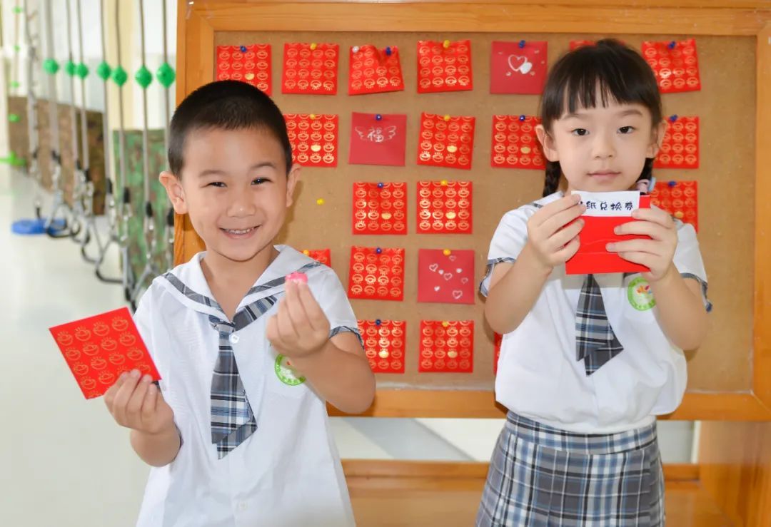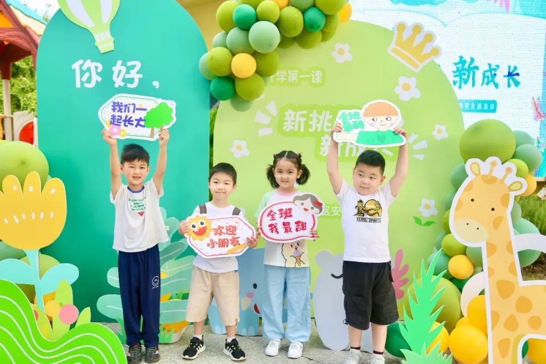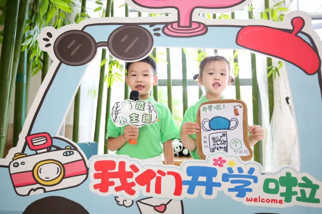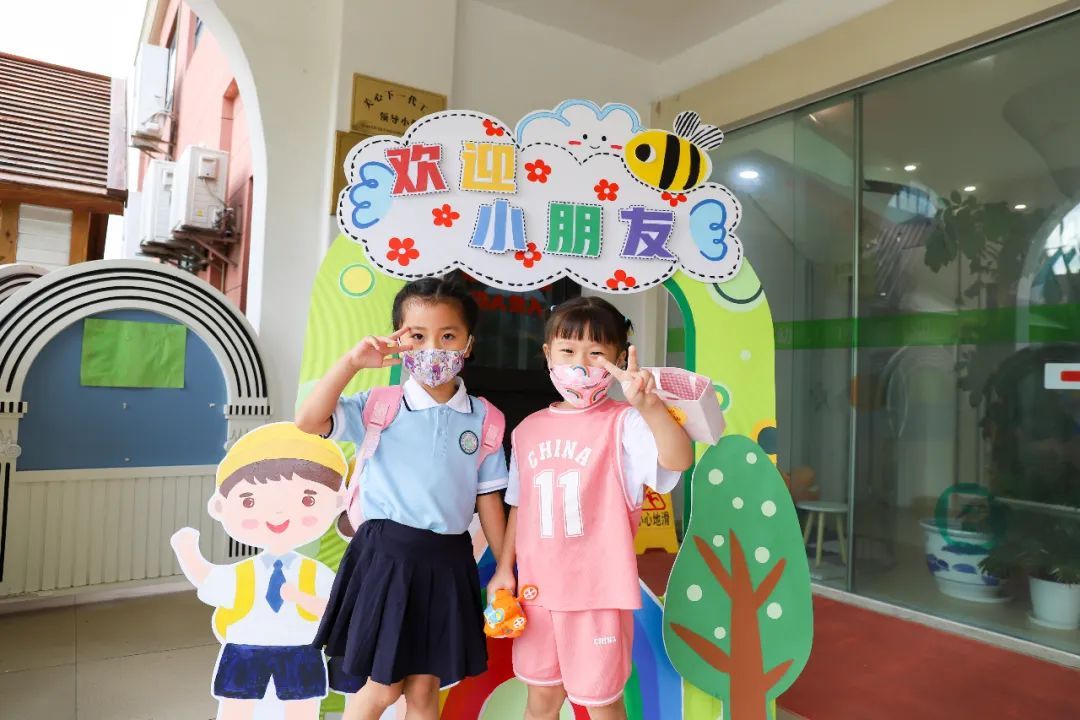 翔华幼儿园在门口设置了合影区,鼓励小朋友和好朋友合影留念。