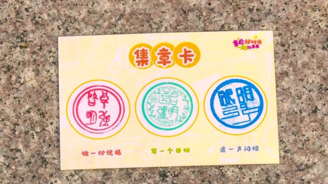 新学年,学生们还拿到一张特殊的集章卡,在完成“收一份祝福、写一个目标、送一声问候”的任务后,就可以兑换奖品。“开学第一天,孩子们内心既有期待,也可能有一些焦虑和不安,所以我们根据初中生的年龄特点给他们准备了这种互动。通过人际交往,帮助大家尽快适应校园生活。”嘉定区启良中学党支部书记、校长陆正芳介绍。