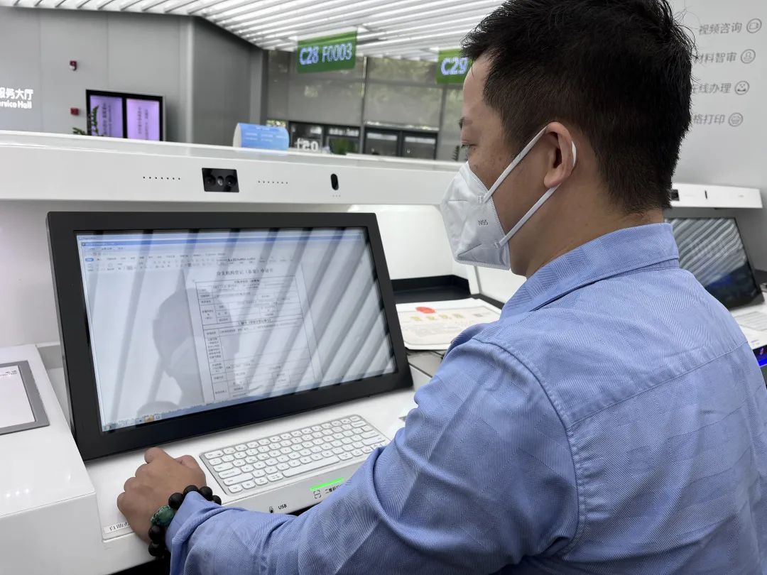 徐汇区行政服务中心企业经办人用“企业码”通过自助终端完成变更申请