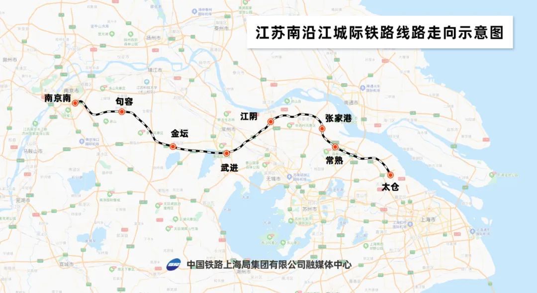 南沿江城际铁路起于南京南站,止于太仓站,接驳沪苏通铁路后引入上海枢纽,线路设计时速350公里,正线全长278.53公里,全线计划设置南京南、句容、金坛、武进、江阴、张家港、常熟、太仓等8座车站。作为沪宁间第二条城际铁路,南沿江城际铁路建成通车后将承担起沿线通道内以及沿线与沪宁主轴城市间的城际客流,进一步推进句容、江阴、张家港、常熟、太仓等全国百强县加快融入沪宁一小时高铁圈。