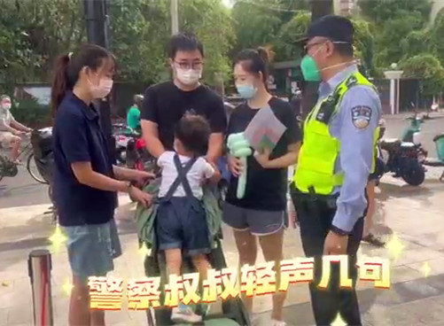 在常熟路幼儿园门口,护校民警李国增则现场引导家长有序带着孩子通过安全通道,将孩子安全送抵学校进行测温登记。对于一些不肯入园哭闹的孩子,李国增则拿出了小玩具和公安的小扇子等物品,帮助孩子缓解“分离焦虑”,开开心心入园。