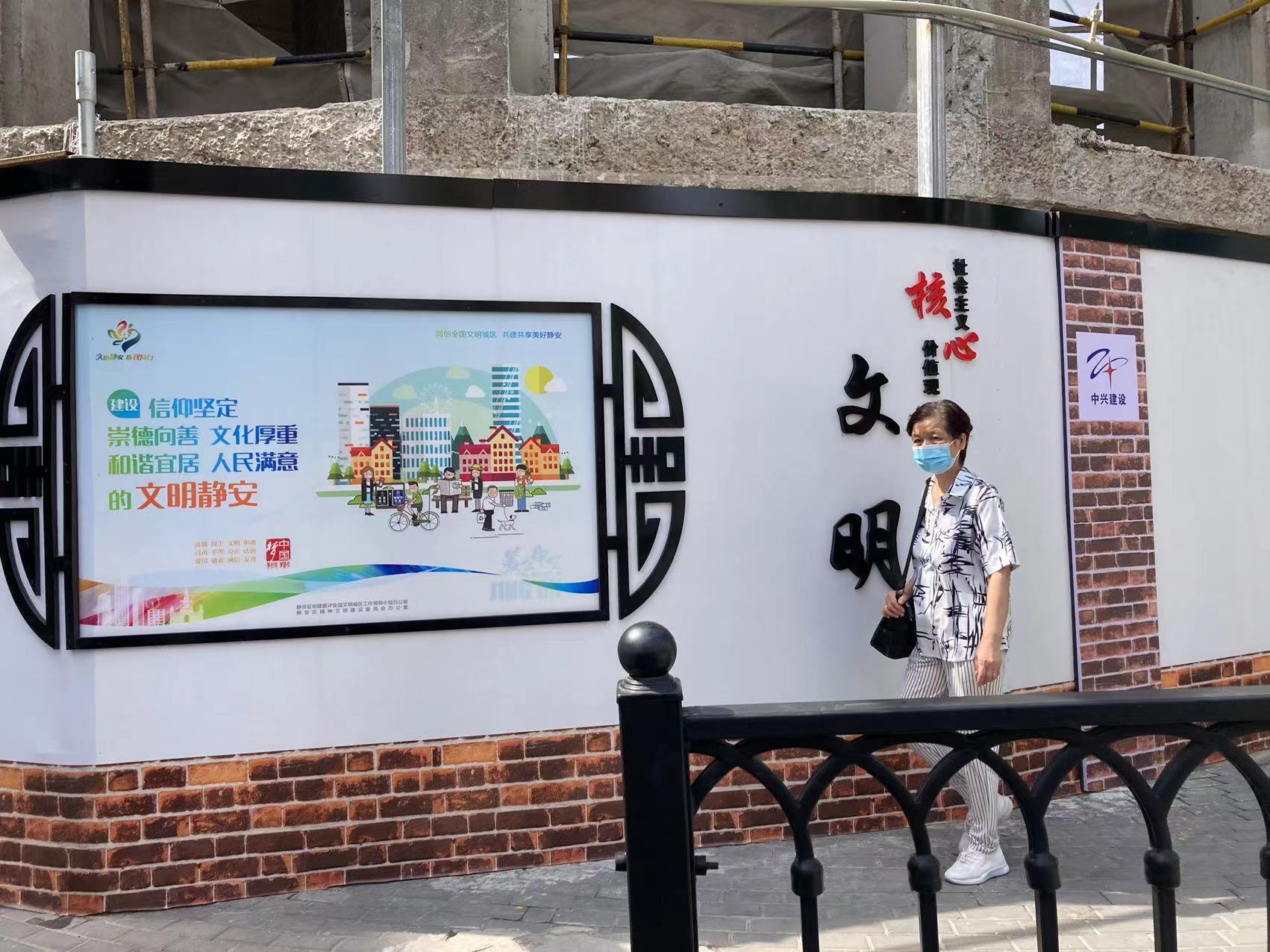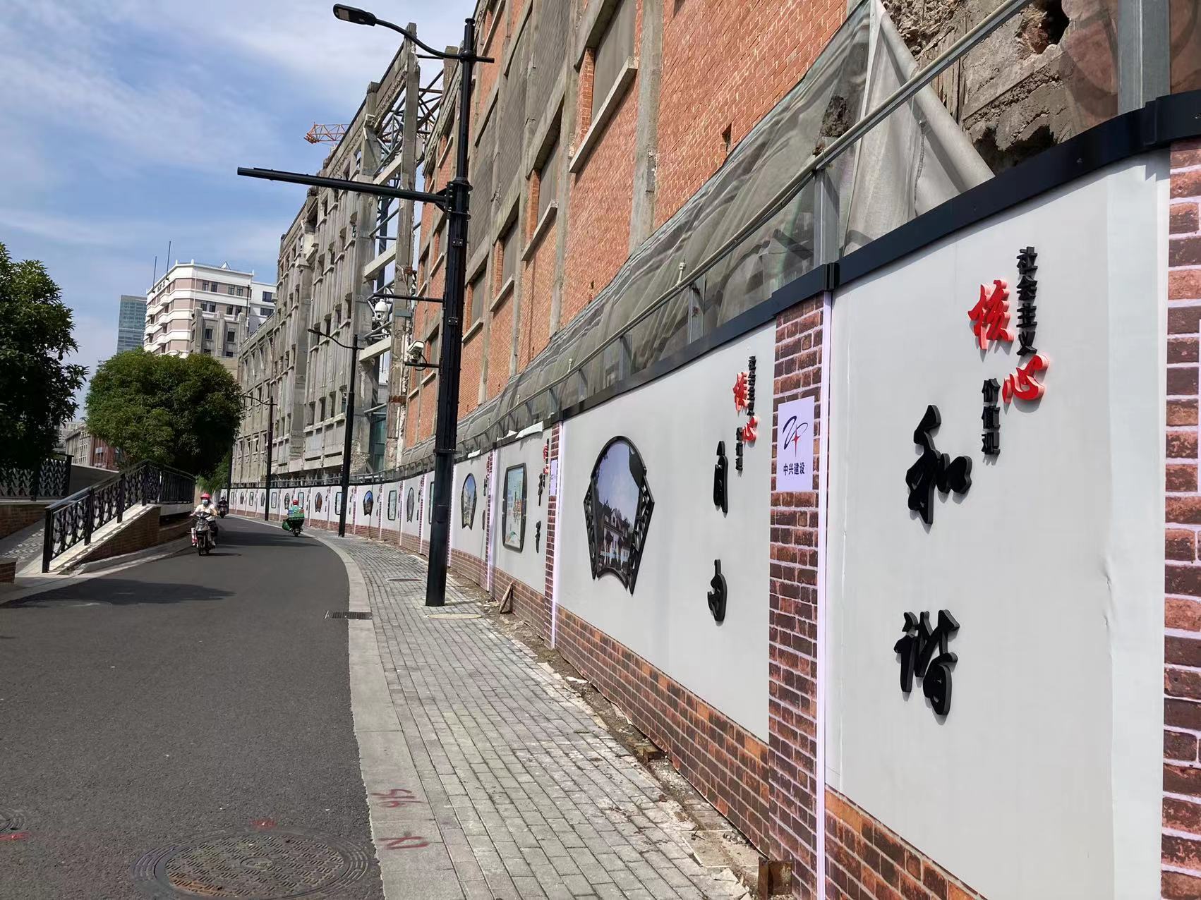 如今,图文并茂的工地建筑围挡已成为城市的一道风景,不断规范、提升建筑工地围挡形象,为创建全国文明城区“添彩”。
