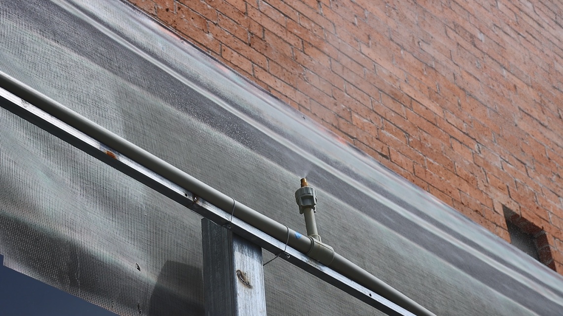 围挡上方安装的喷淋系统,在炎热的夏季喷射出淡淡的水雾,为路人降温纳凉的同时,增加施工区域的湿度,降低粉尘浓度。