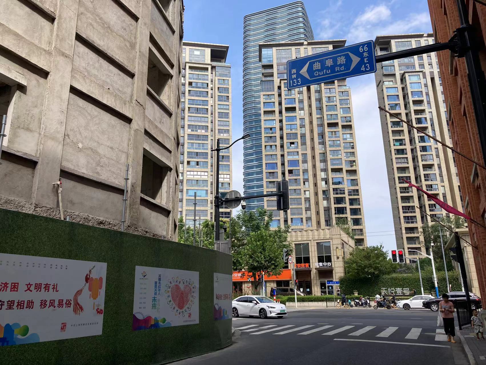 记者注意到,靠近甘肃路一侧的围挡还未完工。负责人表示,等到这边外立面快工、脚手架落架后,就能马上安装完成。