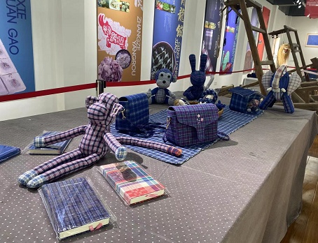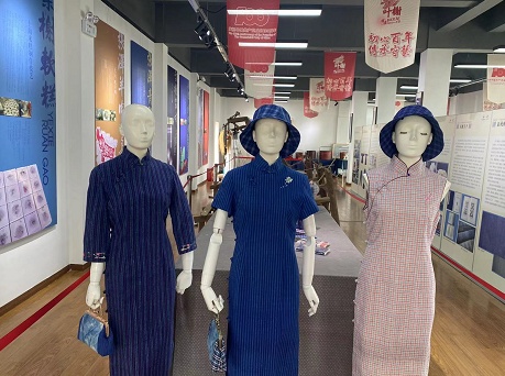 筘布拼接,手工缝制,胸口的小花为藏蓝色的裙子增添了一丝别样风情。“这些老布我们小时候也有,但没想到可以做成这么漂亮的裙子。”体验馆内,市民秦玉英仔细观摩眼前的一款旗袍。筘布做成的旗袍、手包、玩偶,甚至还有笔记本,“变身”后的筘布让前来参观的市民不住点头,“可以重温儿时回忆,还能体验到现在的创意。”秦玉英说道。