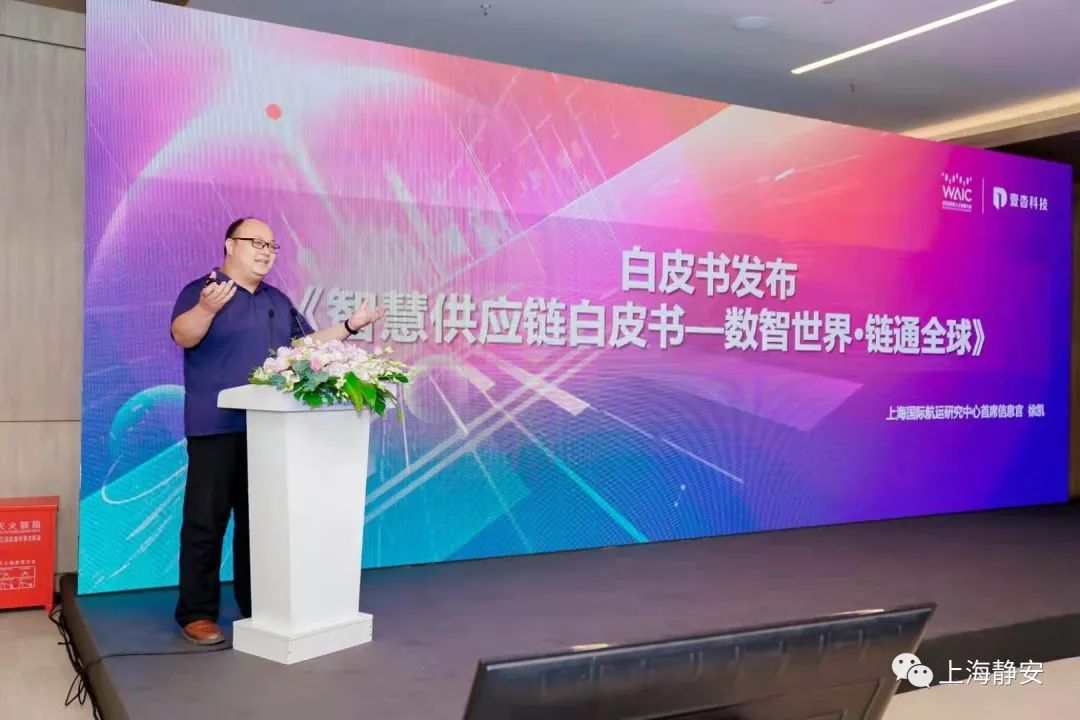 论坛现场,壹沓科技公司联合上海海事大学、上海交通大学中美物流研究院、上海虹口数字航运创新中心、上海交大安泰EMBA供应链与物流协会等权威机构共同发布了引领行业发展的《智慧供应链白皮书—— 数智世界·链通全球》,上海国际航运研究中心首席信息官徐凯博士从供应链行业发展趋势、数字科技和人工智能等前沿技术应用、智慧供应链未来前瞻等方面,对白皮书进行了解读。
