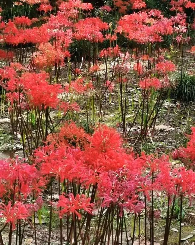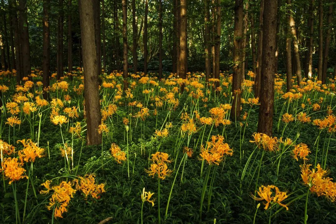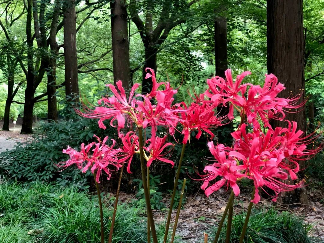 石蒜如烟花般盛放,轻盈婀娜地翩翩起舞,散发着曼妙的优雅姿态。它们会陆续向游客展现饱满的风姿。快带上家人一起来共青森林公园内体验自然野趣的美妙景色吧。