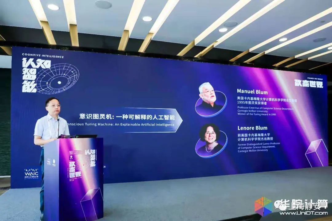 论坛上,图灵奖获得者Manuel Blum教授及其夫人Lenore Blum教授发表了主题为《意识图灵机:一种可解释的人工智能》的演讲。据两位教授介绍,意识图灵机是一种受神经科学启发的计算机架构,是在全局工作空间理论的基础上提出的一种研究意识的数学模型,能够帮助我们理解意识的产生机制。同时,Blum夫妇也提出为什么人类的自由意志会存在,以及自由意志如何在意识图灵机的框架中被解释。