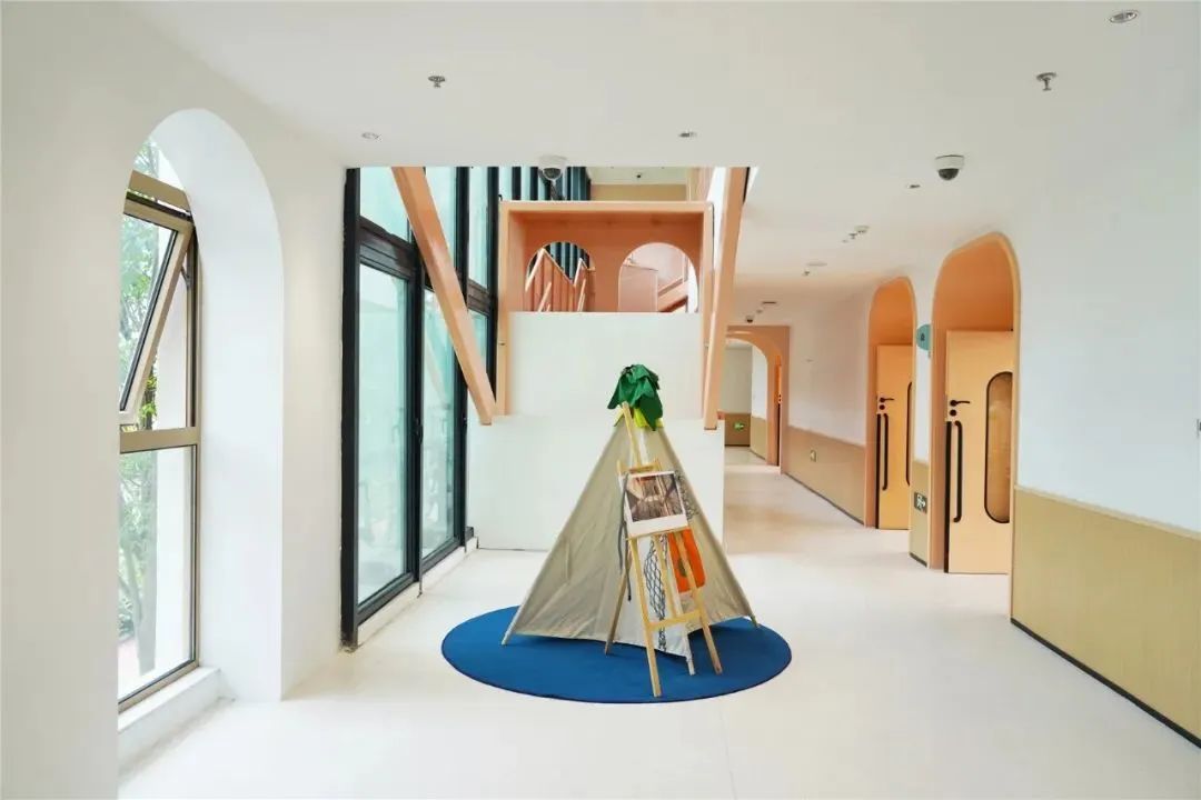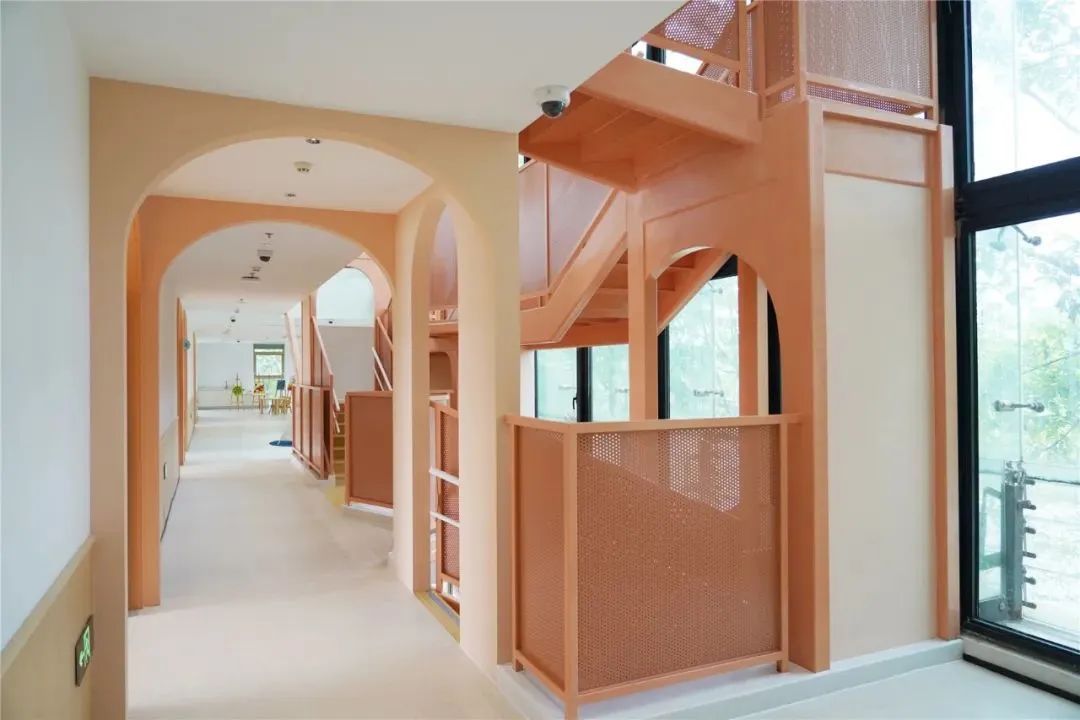 走进幼儿园室内,便能看到各处都建有多样的几何造型游乐设施,为孩子们搭建出了丰富的探索空间。