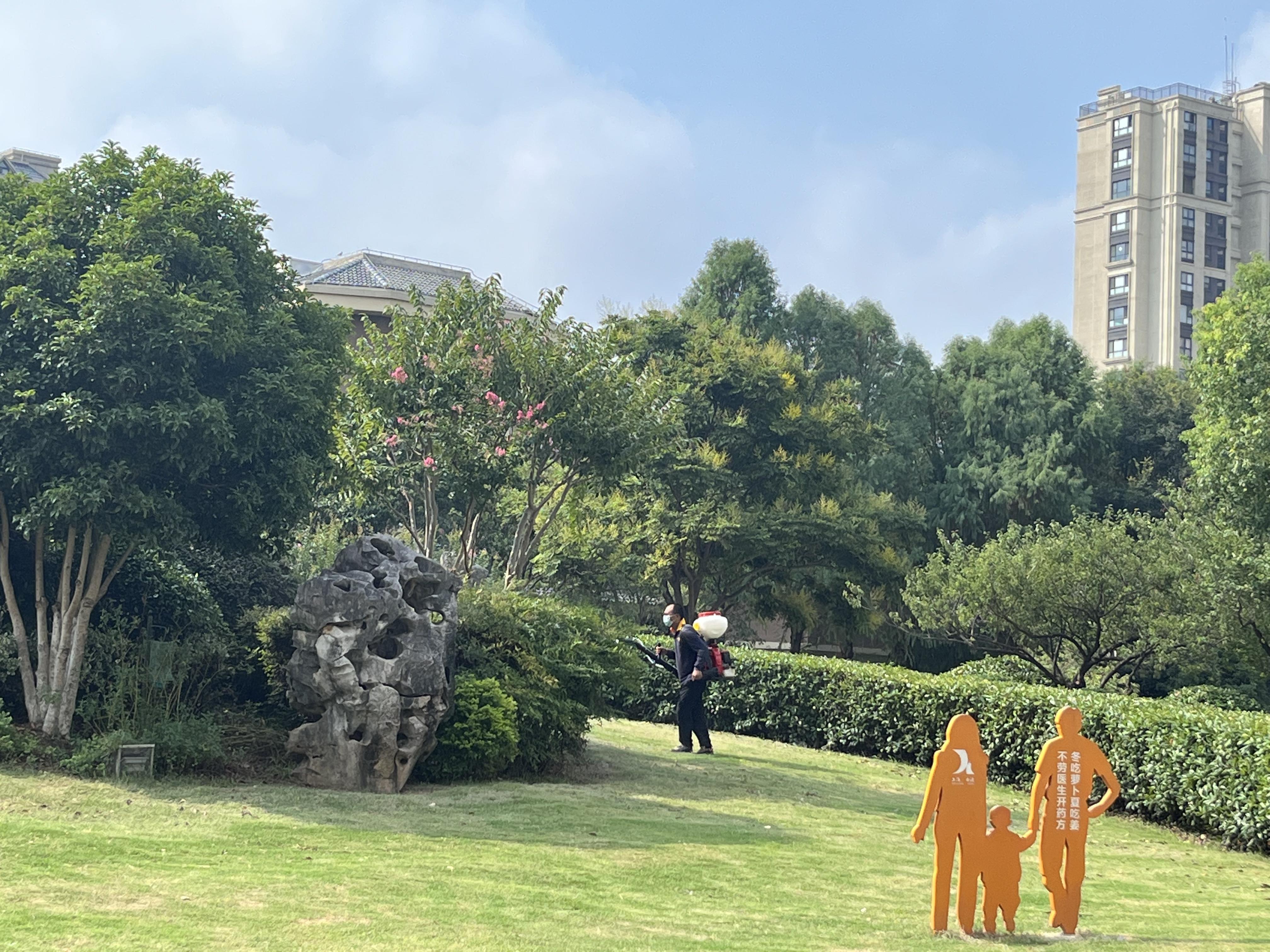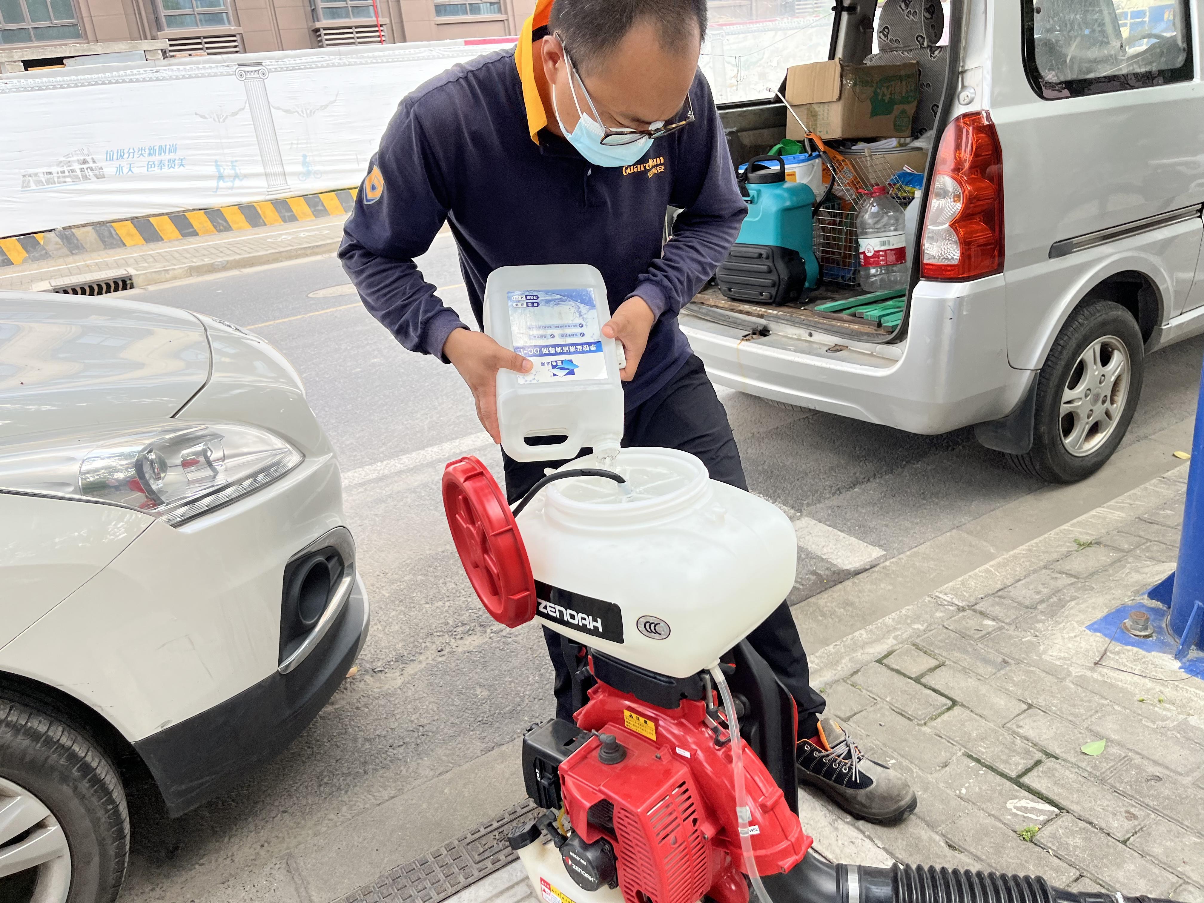 董辉介绍表示,现在还处于高温时期,因此工作人员都是每天利用早晚时间段,避高温开展消杀工作, 每天约做4到5个小区,主要对绿蓠和室内外成蚊栖息场所(如绿地、地下车库等)进行空间和滞留喷杀,每日累计喷杀面积约1到2万平方米。此外,工作人员还会因地制宜加强对孳生地处置,如清除各种小型容器积水,对一些不易清除积水(如:地下室集水井、雨水井等)进行药物控制,防止蚊幼孳生繁殖,控制和降低成蚊密度。